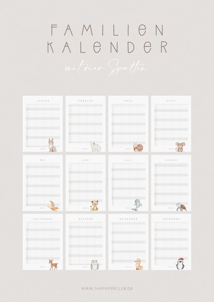 - Vier Spalten pro Monat (für 1 - 4 Personen)